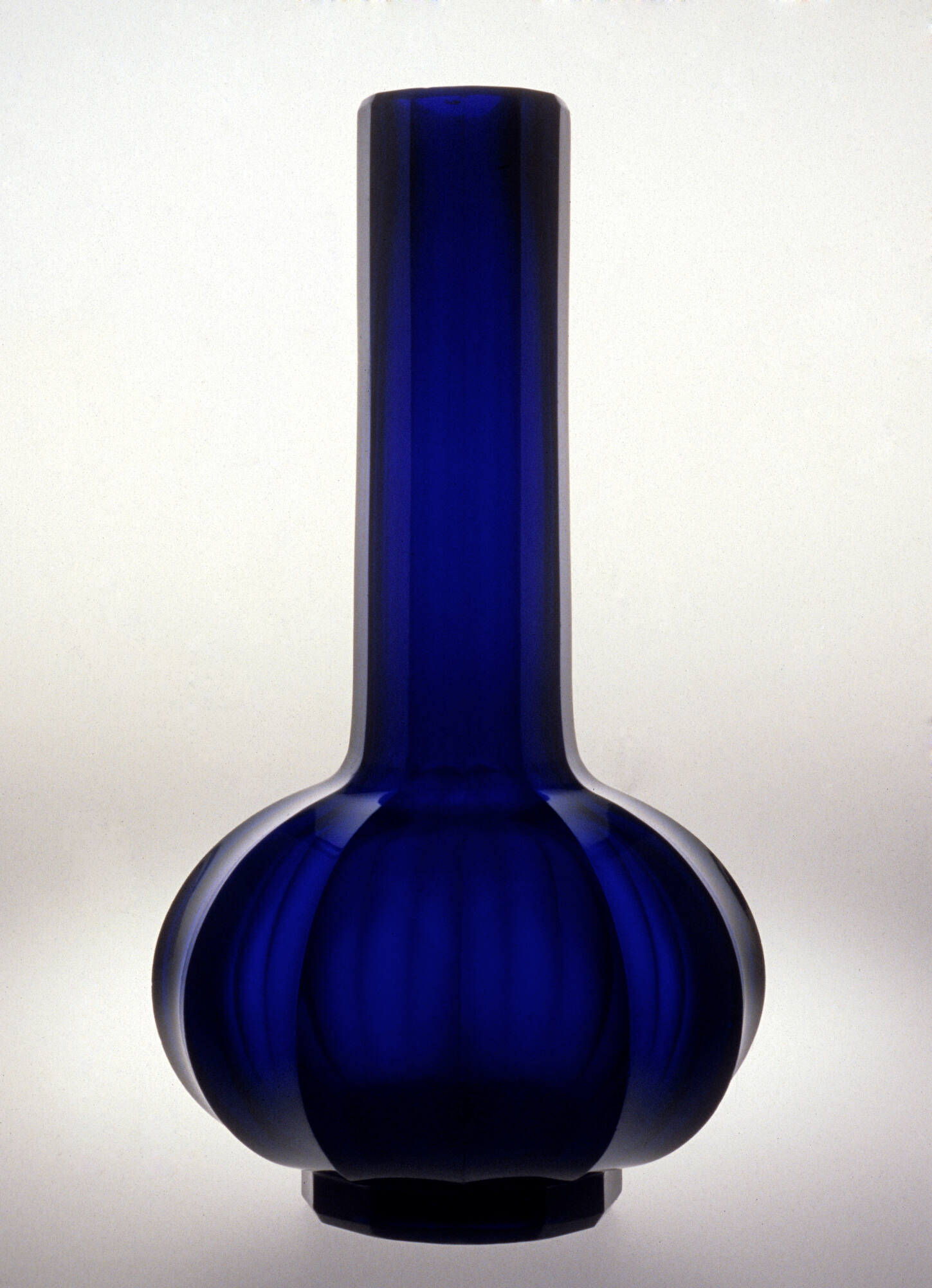 DescriptionDeep blue, long straight neck; spherical body; neck and body twelve-sided.