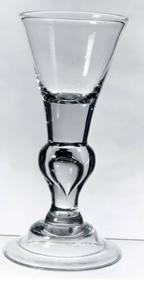 DescriptionDomed and folded foot, knop with tear-shaped bubble enclosed.