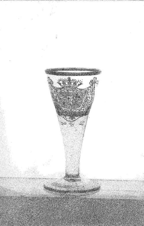 DescriptionBlown glass, with wheel-engraved and gilded decoration. Colorless; very heavy drawn stem; engraved and gilded coat of arms of Saxony-Poland.
