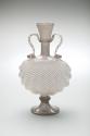 DescriptionColorless and opaque white glass; blown in a two-part mold, applied, tooled.
