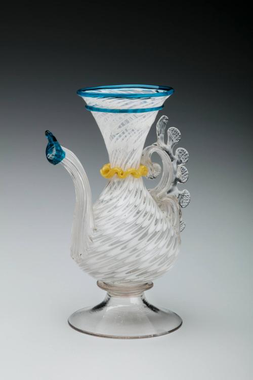 MediumColorless and opaque white glass, blown, applied, and tooled