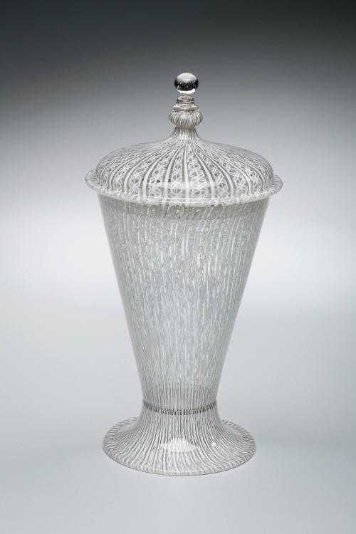 Label TextCovered beakers with straight and flaring bowls were made in a variety of sizes, the larger ones intended for the Northern European market. Fadenglas (“thread glass”), as it was called in German, became part of the luxury goods traded widely by wealthy German merchants from Augsburg and Nuremberg who worked in Venice. Naturally, it could also be found in their own households. The popularity of Venetian glass in the rest of Europe led to its emulation by various other European glasshouses.Exhibition HistoryToledo Museum of Art, Venice: Light and Landscape, November 5, 2010-March 11, 2011.1550-1600