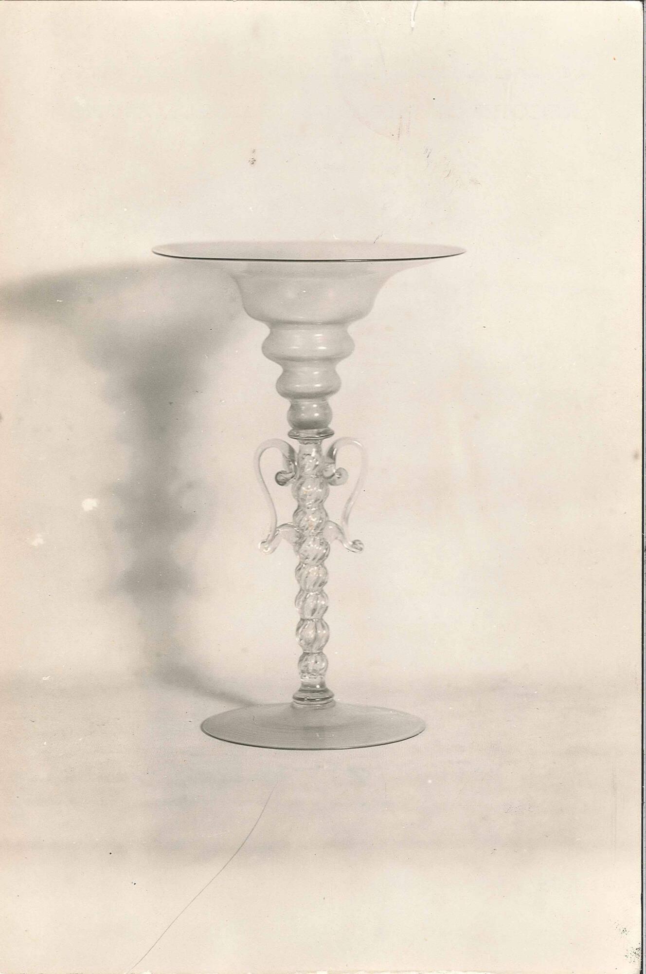 Fluted baluster stem, with two handles of thin glass ribbons.