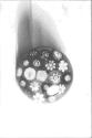 Description"Spaced millefiori" paperweight; encased millefiori decoration, colorless dome enclosing five rows of polychrome canes; pink "Clichy rose" in center, bright greenish-blue ground.
