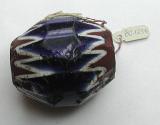 DescriptionLarge faceted biconical barrel bead, pierced longitudinally. Blue matris, with zigzag red and white design on the ends.