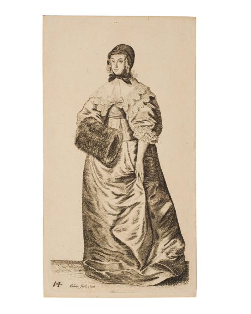 Woman with Mask and Muff, plate 13 from: Ornatus Muliebris Anglicanus (The Severall Habits of English Women...)