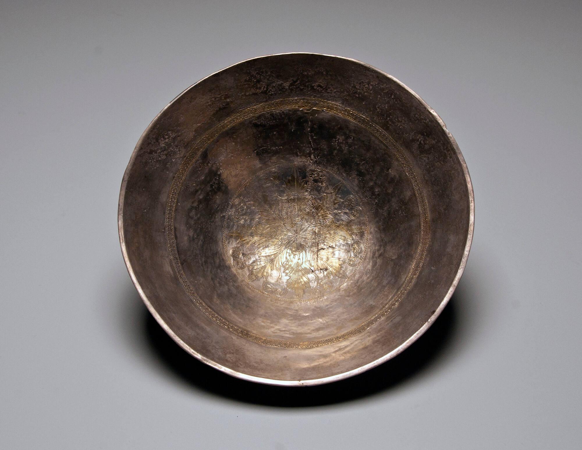 MediumSheet silver formed by lathe spinning, with flat chased and engraved decoration, partly gilding.