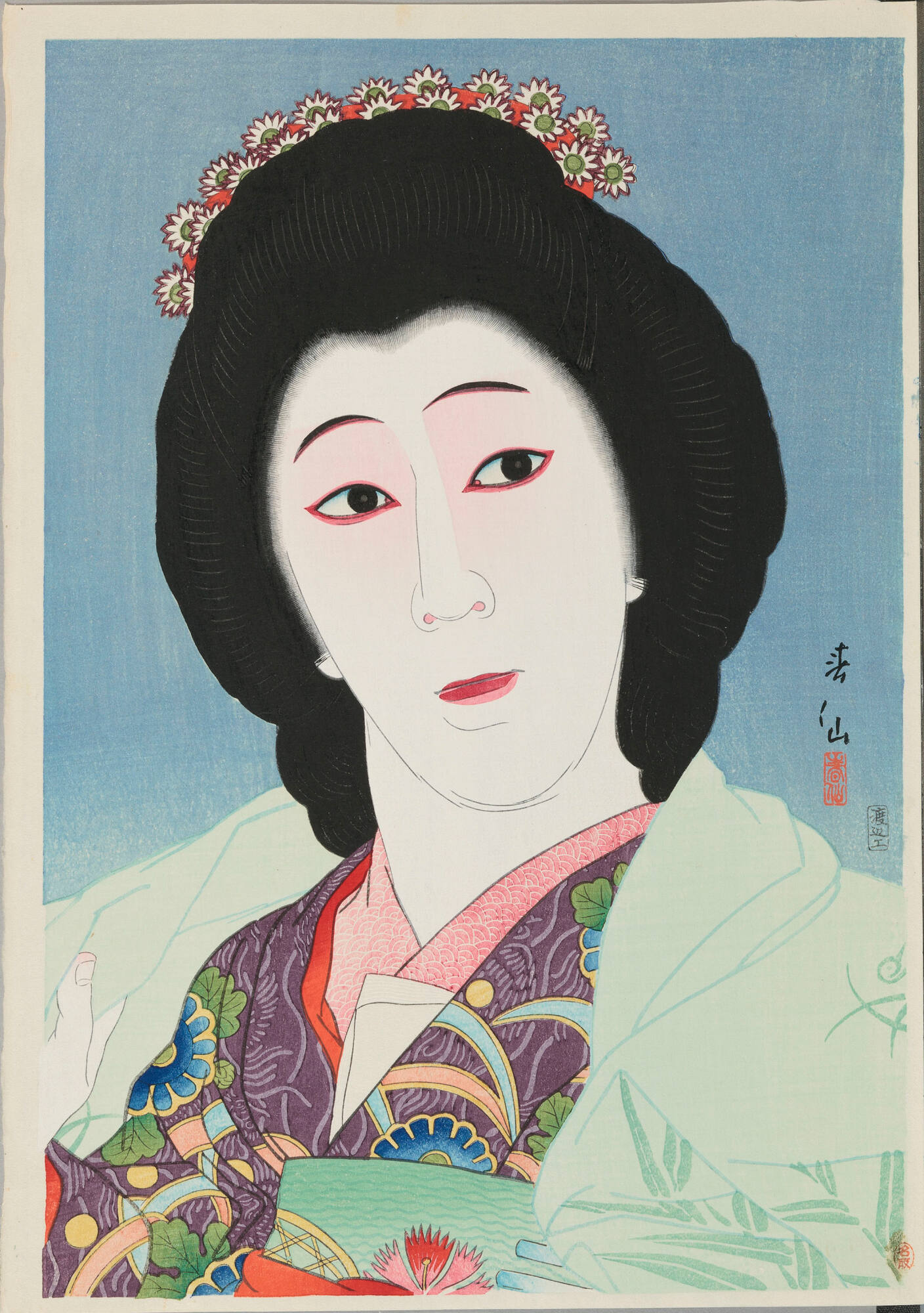 Onoe Baiko VI as Sayuri in Modoribashi, from “Creative Prints, Collection of Portraits by Shunsen”