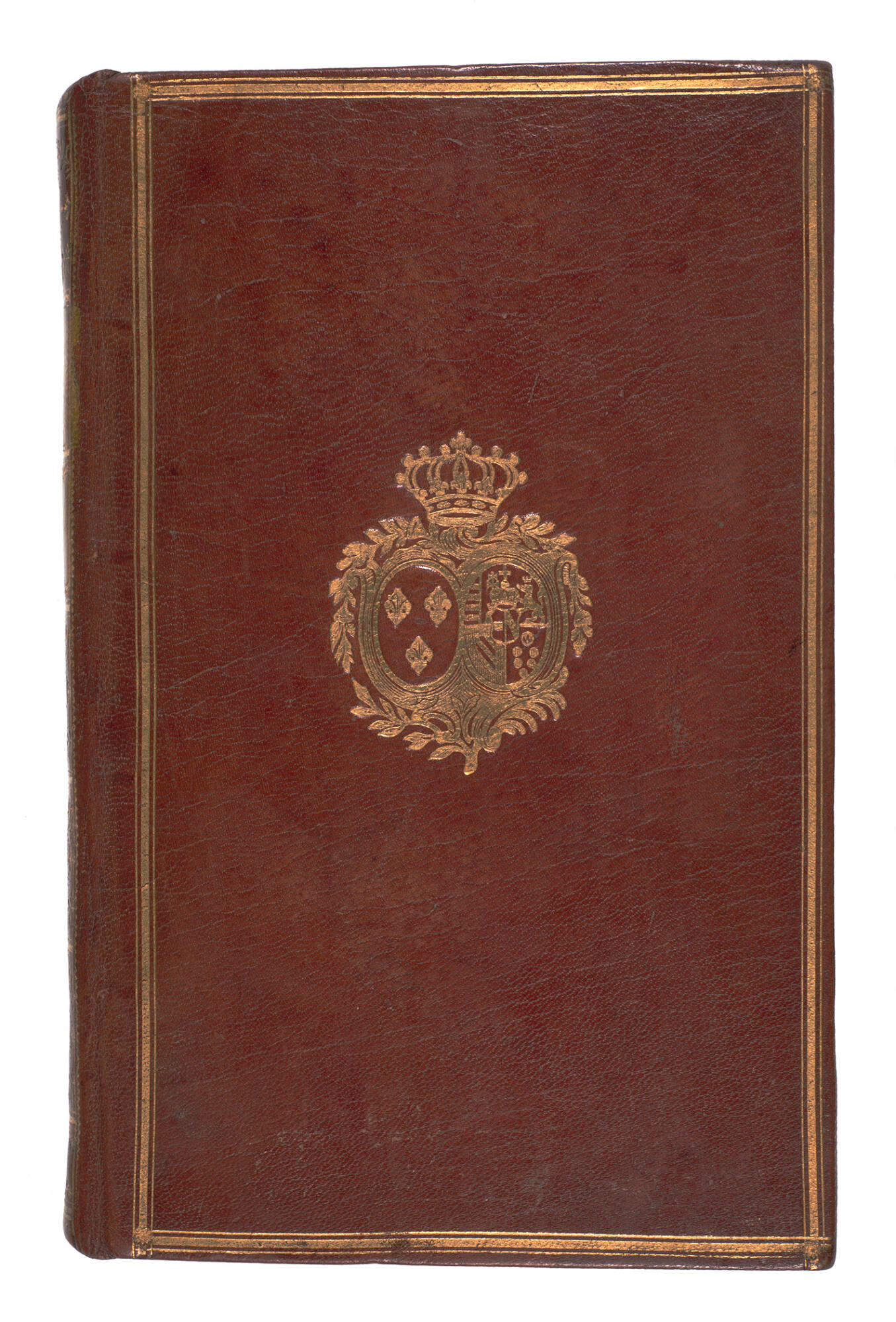 DescriptionSewn gatherings case bound into red morroco bindings with gilt tooling stamped in gold with the arms of Marie Antoinette (1755-1793).