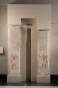 DescriptionThis panel (1925.523) and its flanking counterpart (1925.524) formed the two vertical sides of a false door from the tomb chapel of Khentenka. Carved in raised relief, this limestone slab shows Khentenka standing and facing inward, holding a long staff in one hand and a folded cloth in the other. Three vertical columns of hieroglyphs accompany the figure, offering prayers to Anubis for a good burial, a long life, and eternal offerings.