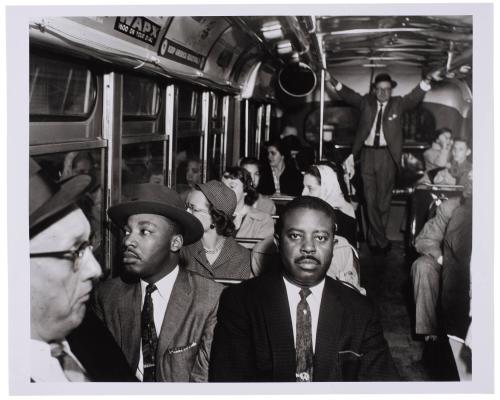 Label Text“We had won self-respect…. We felt that we were somebody, that somebody had to listen to us, that we had forced the white man to give what we knew was part of our citizenship…. [I]t is a hilarious feeling that just goes all over you, that makes you feel that America is a great country and we’re trying to do more to make it greater.” --Jo Ann Robinson, one of the organizers of the Montgomery Bus Boycott, on the 1956 Supreme Court decision desegregating buses On December 1, 1955, Rosa Parks, a 42-year-old seamstress and NAACP worker in Alabama, was arrested for refusing to give up her seat to a white man. The arrest sparked the Montgomery Bus Boycott, which brought national prominence to Dr. Martin Luther King, Jr. A year later the Supreme Court upheld a lower court ruling outlawing segregation on buses.Published Referencescf.: Pictures Tell a Story (Norfolk: Chrysler Museum of Art, 2000) cf.: Let Us March On! Selected Civil Rights photographs of Ernest C. Withers, 1955-1968 (Boston: Massachusetts College of Art, 1992)Exhibition HistoryToledo Museum of Art, People Get Ready: 50 Years of Civil Rights, June 27-September 21, 2014.