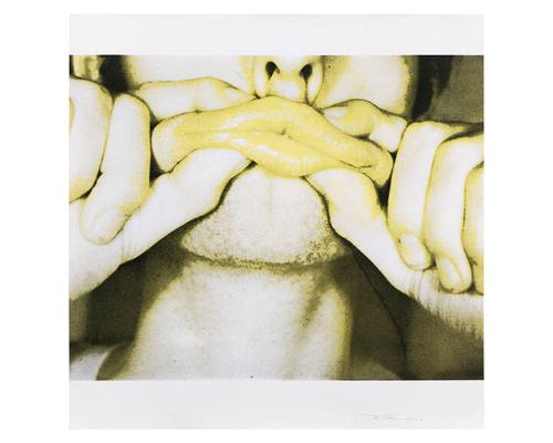 MediumScreenprint in black and yellow green on Kromekote paper.