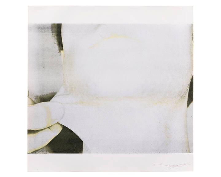 MediumScreenprint in black and yellow green on Kromekote paper.