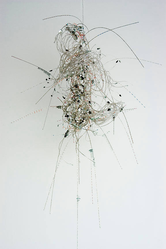 MediumCrystal and glass beads, nickel-chrome wire.