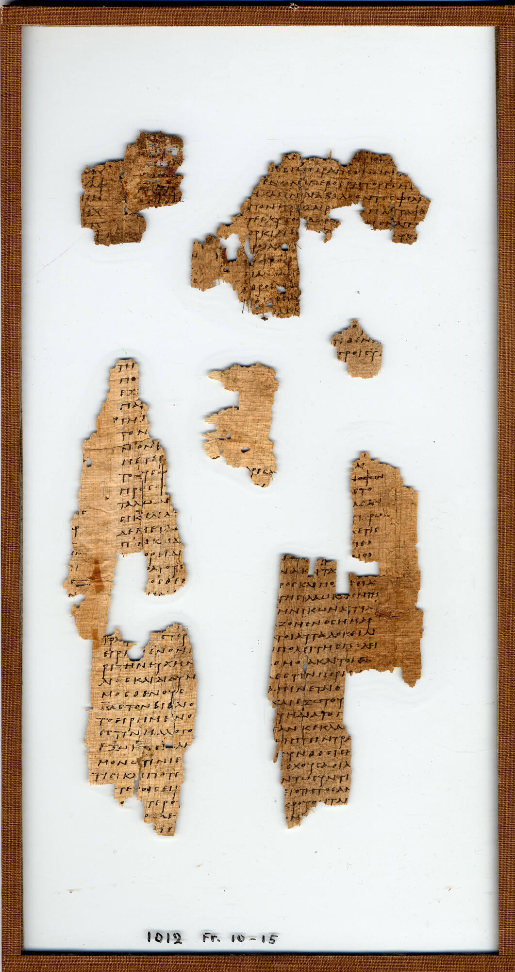 Originally a single continuous roll copied in the late 2nd or early 3rd century AD, the manuscript is now preserved in the Toledo Museum of Art’s collection as four distinct groupings of fragments (frs. 1–8 are 1915.45, fr. 9 is 1915.46, frs. 10–15 are 1915.44, and frs. 18–59 are 1915.47).