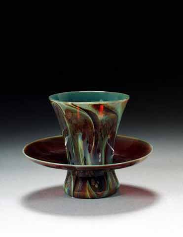 Label TextCups with matching deep fitted saucers were paralleled in European ceramics and Chinese export porcelain. They were called trembleuses (“shaking hands”) and were used to serve coffee and hot chocolate. Trembleuses of agate glass appear to have been made exclusively in Venice. A difficult glass formula to create and manipulate, calcedonio glass imitating agate or chalcedony has been a specialty of Venetian glassmaking technology since the 15th century. The recipes were highly guarded secrets and the resulting vessels were comparatively expensive.Published ReferencesEuropean Ceramics, Glass, Silver, and Vertu, Sale W05733, Sotheby's, London (Olympia), July 6, 2005, Lot 172.