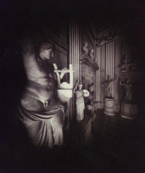 Label TextThese three images were produced early in the career of Adam Fuss. Using a pinhole camera (a camera without a lens, but only a small hole in one side to let light in), Fuss photographed the sculptures in the Metropolitan Museum of Art, where he was working as a guard at the time. As he explained, “at night, they’d come alive, full of power and mystery…it seemed possible to create a photographic space in which the sculptures could breathe.” The pinhole camera is particularly suited for ‘creating a photographic space’, because the central portion of the image is in sharp focus with continual degradation towards the edges until the image disappears altogether. The objects appear to float and dissolve into unlimited space.Published Referencesc.f. Pinhole Photographs: Adam Fuss (Washington, D.C.: Smithsonian Institution Press, 1996): n.p.Exhibition HistoryToledo Museum of Art, Refraction/Reflection, April 20-September 2, 2012.