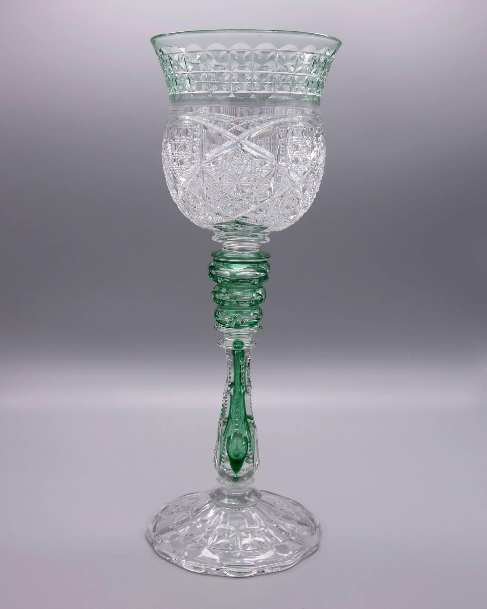 MediumColorless and green glass; blown, cut.