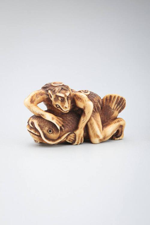 Netsuke: Kappa on Namazu (watersprite fighting an earthquake fish)