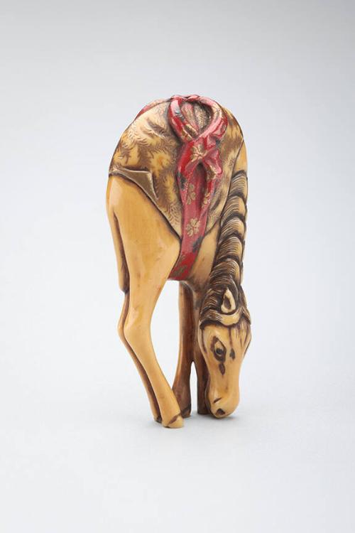Netsuke: Uma (horse with a fancy saddle)