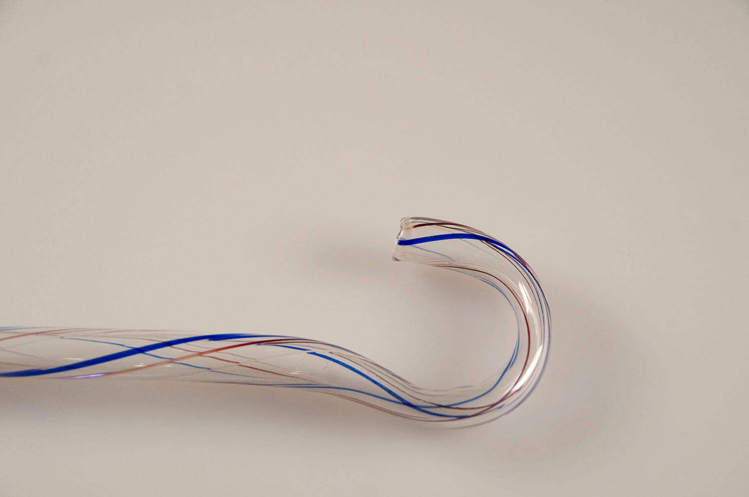 DescriptionClear with blue and white and red threads; color threads on exterior.