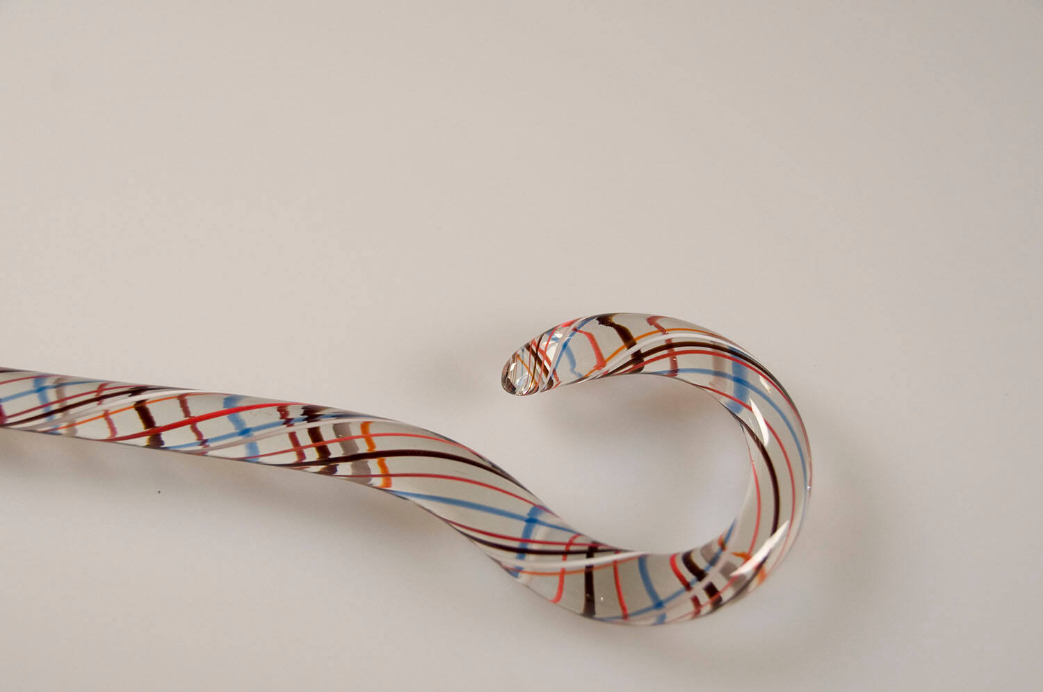 DescriptionClear with multicolor ribbon on exterior, "plaid."