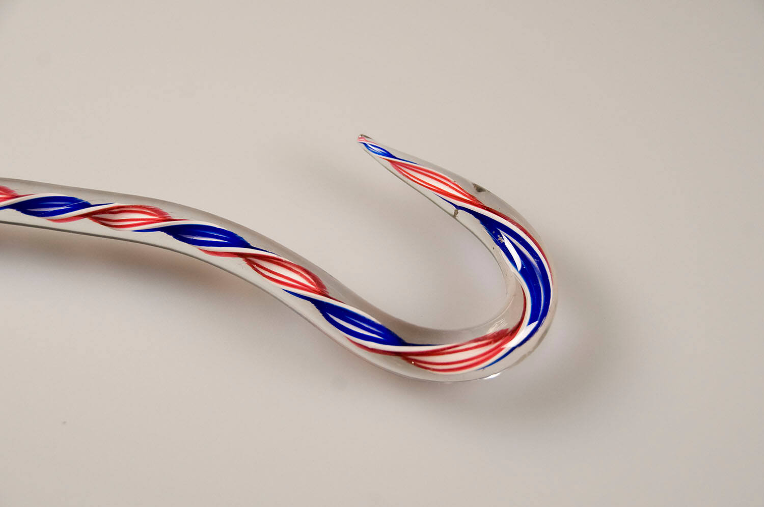 DescriptionClear with red, white, and blue inner ribbon (broken tip).