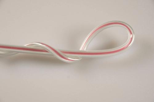 DescriptionClear and white and red - unique handle twisted around stem; tiny bulb tip.