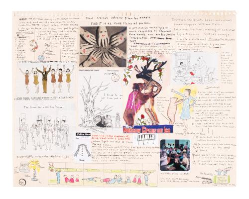 MediumMixed media drawings (watercolor, ink, root beer, etc.) with collage elements affixed with transparent and duct tapes.