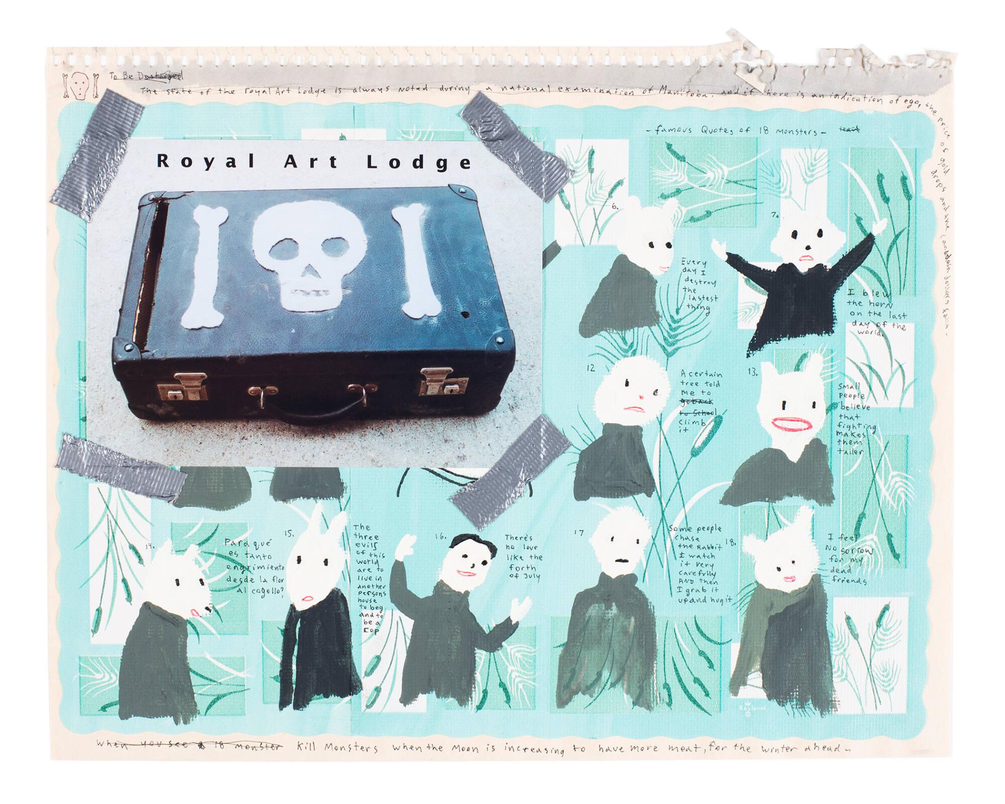 MediumMixed media drawings (watercolor, ink, root beer, etc.) with collage elements affixed with transparent and duct tapes.