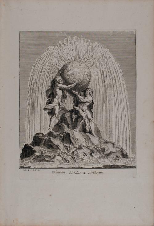 Fontaine d'Atlas et d' Hercule. From: Recueil de divers Desseins de Fontaines et de Frises Maritimes (1 of 20 folio sheets)