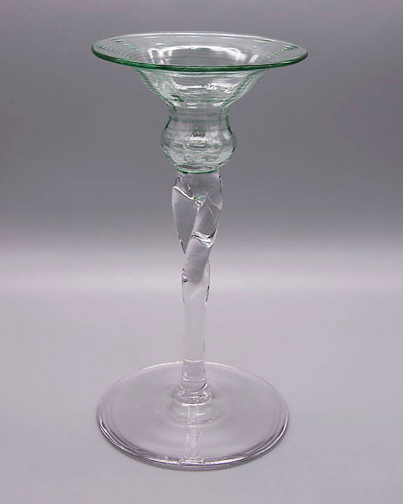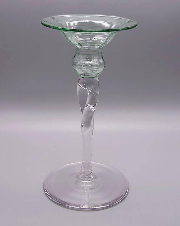 DescriptionGreen threaded mold-blown flared socket, tooled stem, applied round foot.