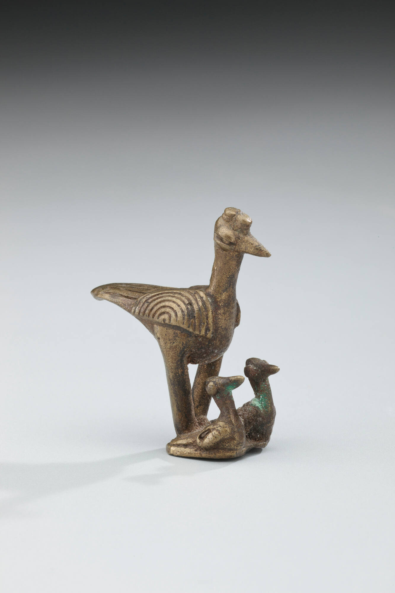 Label TextGold was the basis of Ashanti prosperity from the 14th through the 19th centuries. Miniature sculptures served as weights to measure gold dust on balance scales. Each trader, chief, and family head kept a small bag filled with his own weights, both for verifying accuracy and for the pleasure of assembling “exhibitions” of tiny sculptures as part of each bargain. Ashanti art often incorporates messages and proverbs. The meaning of the sculpture of two human figures is not yet certain, but it might be “A blind man does not show the way to a blind man.”Published ReferencesUnpublished.