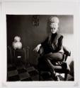 Label TextBest known for her sharp portrayal of society’s so-called fringe element, Arbus was fascinated throughout her career with the revealing details between initial impression and reality. At first glance, this photo reminds one of a conventional portrait in which a socialite poses in a flattering manner alongside her well-groomed lapdog. Here, however, the ‘socialite’ is a bartender wearing a leopard-skin vest, her manicured hand with elegantly extended pinky resting on the chair’s armrest. The ‘lapdog’ is a souvenir toy. With the expert use of the camera flash, Arbus highlights the correspondence between the fluffy fake poodle and the bartender’s platinum beehive hairdo. Both share similar proportions, and their white, rounded forms stand out in strong relief from the sparse décor’s linear patterns.Published ReferencesToledo Museum of Art, Toledo Museum of Art Masterworks, Toledo, 2009, p. 339, repr. (col.).Exhibition HistoryToledo, Toledo Museum of Art, Looks Good on Paper: Masterworks and Favorites, Oct. 10, 2014-Jan. 11, 2015.