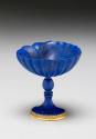 DescriptionCast, carved, ground, and polished opaque blue glass with silver gilded mount.