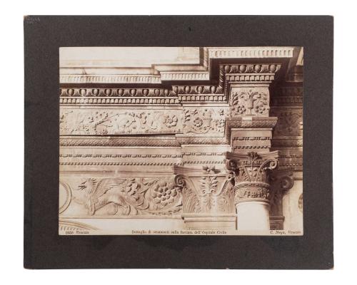 Dettaglio di ornamenti sulla facciata dell'Ospitale Civile