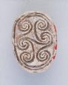Label TextThe underside of this scarab features a continuous "scroll" or spiral pattern. This geometric design was extremely popular during the Middle Kingdom and the "Hyksos" period that followed. Unlike later scarabs which often featured gods or kings, these earlier seals used endless, interlocking lines to symbolize eternity, protection, and the interconnectedness of life. The back of the beetle is simplified, with prominent eyes and small nicks on the sides to suggest the separation of the head and wings.16th–18th Dynasties (1650–1292 BCE)