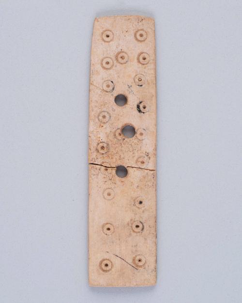 Label TextThese thin ivory strips (1915.90A-C) were originally part of a decorated wooden box, a type of personal furnishing often buried with the dead. They were found in Tomb 72 at Balabish, a cemetery excavated in 1915 by the Egypt Exploration Fund on behalf of American museums. The tomb dates to the 19th Dynasty, a time when such cosmetic and grooming equipment was regularly included in burial assemblages. Balabish yielded over 240 graves, providing a wide view into funerary practices across different social levels in ancient Egypt.Comparative ReferencesSee also Posener, Georges, Encyclopedia of Egyptian Civilization, New York, Tudor Publishing Company, 1959, repr. p. 97.