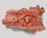 DescriptionThis fragment comes from a Roman wall painting. Its central motif is a swan within a lozenge frame, shown lifting its wings and holding a ribbon in its beak. The scene is painted in several colors against a rich dark red background. The swan is modeled with careful light and shadow, while the surrounding ornaments are flatter and more decorative, with side bands divided into panels. The fragment was once broken into many pieces and later reassembled and mounted.