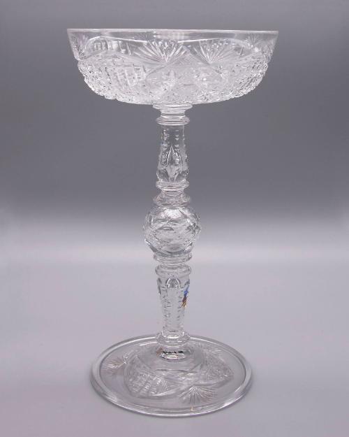 DescriptionToledo pattern, K507-1014, colorless glass, blown, tooled and cut as 1969.14. Polished pontil mark.