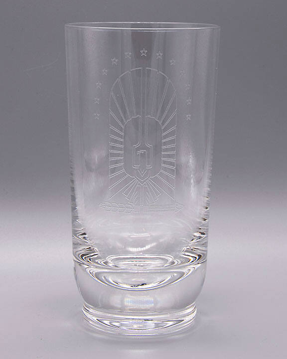 DescriptionEmbassy pattern 4900 line. Colorless glass, probably blown in a paste mold, rim appears to have been sheared and fire polished; polished, slightly concave base. Acid etched with stylized U.S. coat of arms.