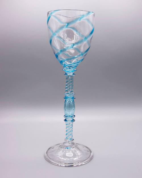 DescriptionTranslucent turquoise-blue spiral in bowl and stem. Slight diagonal fluting.