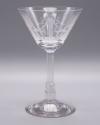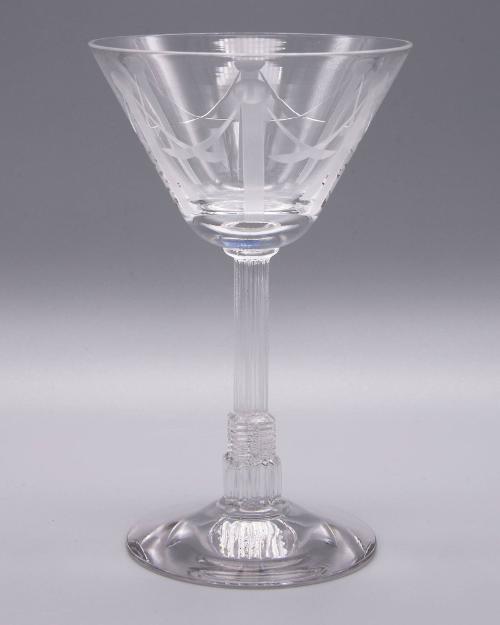 DescriptionClear glass with cut decoration in Malmaison pattern. Architectural baluster stem.