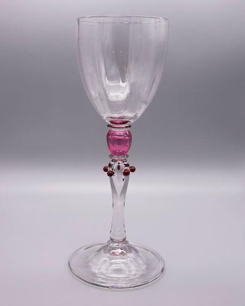DescriptionColorless and gold ruby glass, made in same manner as 1935.17, except bowl is optic molded with ten vertical ribs and is not engraved. Rough pontil mark.