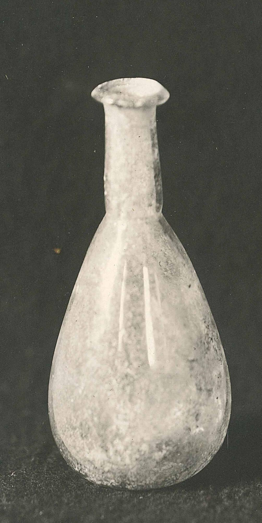 Its form closely parallels other double convex bottles in the collection (e.g., 1923.1147, 1923.1148, 1916.162) and resembles examples illustrated in Vessberg 1952 (pl. VII, nos. 28–29) and Hayes 1975 (no. 215, fig. 8; pl. 10). Additional comparanda include pieces published by Bagatti and Milik in Dominus Flevit, with dates ranging from the second quarter of the 1st century to the mid-3rd century CE, as well as similar vessels from Huqoq and Nazareth documented by Barag (1970).