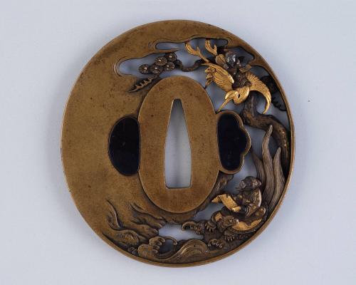 Sword Guard (Tsuba): (front) Tsuru Sennin (Crane Rishi) and Kame Sennin (Tortoise Rishi); (back) Back of the obverse
