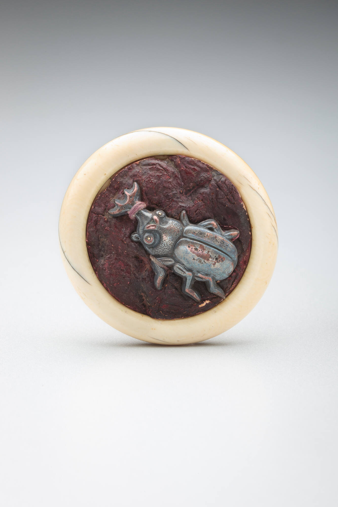 Netsuke: silver beetle on a mushroom