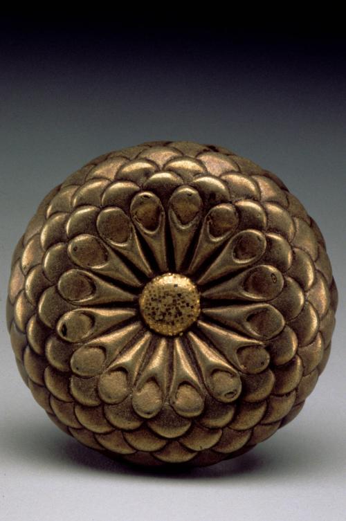 Netsuke: manju with chrysanthemum blossom