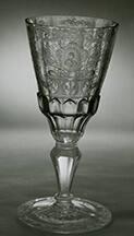 DescriptionEngraved with portrait of Emperor Charles VI, surrounded by elaborate scroll work, over two-headed eagle of Holy Roman Empire; facet-cut stem; cut and engraved foot.