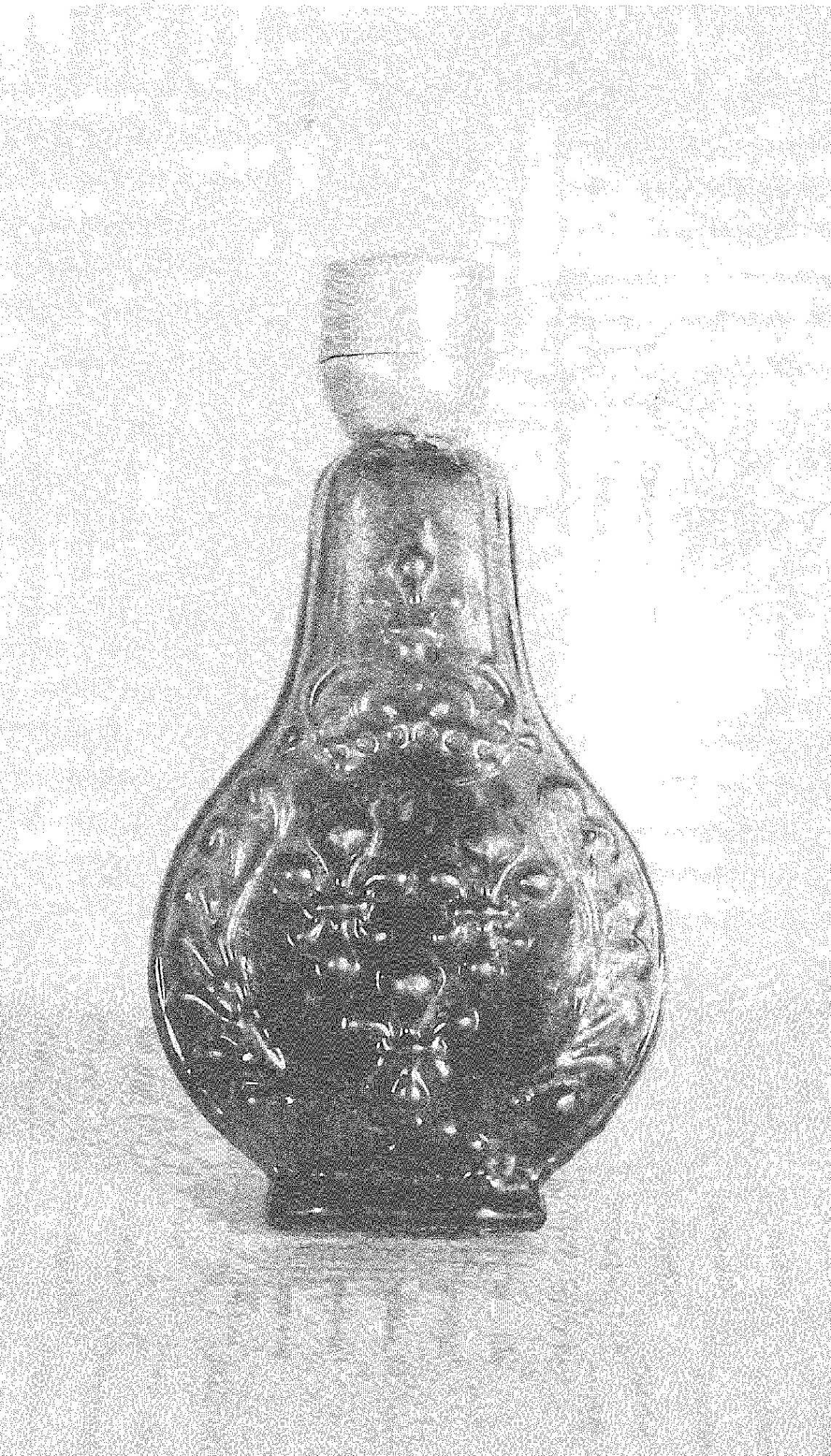 DescriptionDark blue glass, mold-blown, pewter cap.